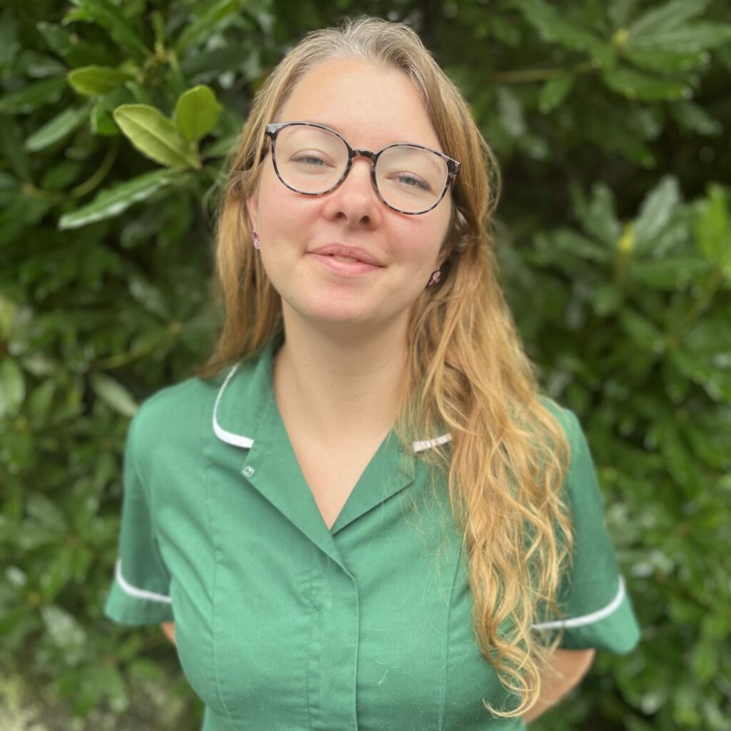 I joined the practice in March 2025 as a student veterinary nurse to continue my training- I hope to qualify in 2026! Previously, I graduated from Plymouth University with a degree in Animal Welfare and Behaviour. As part of my course I lived and worked in Jersey at the zoo, looking after a range of species… including giant fruit bats, howler monkeys and Andean bears!